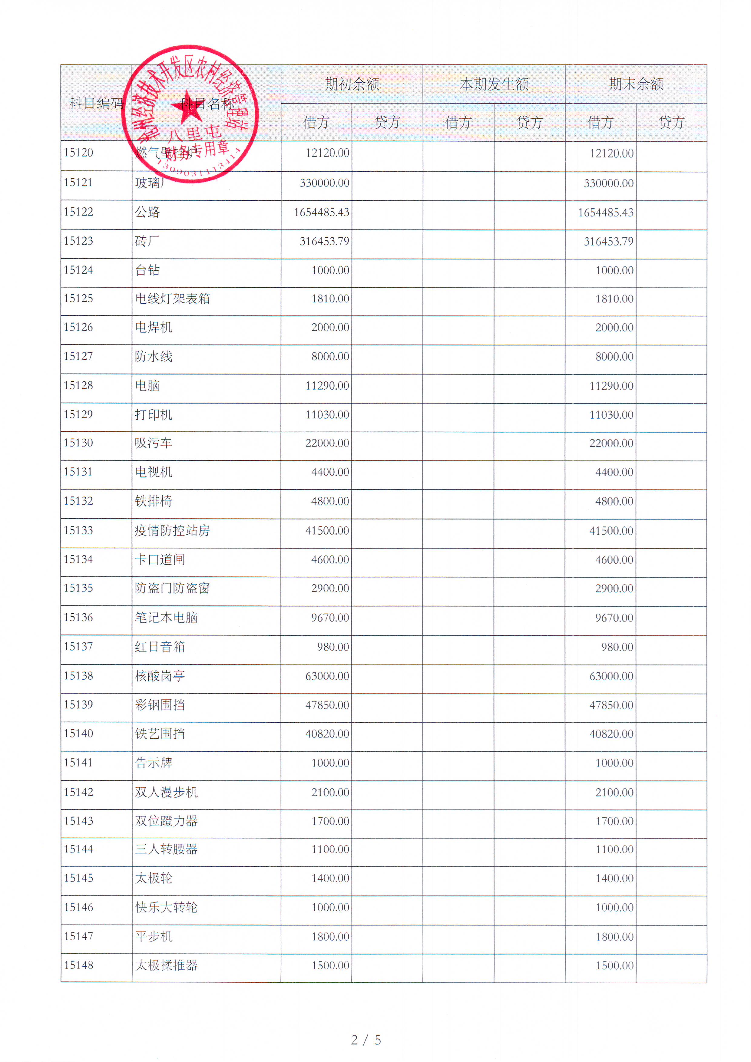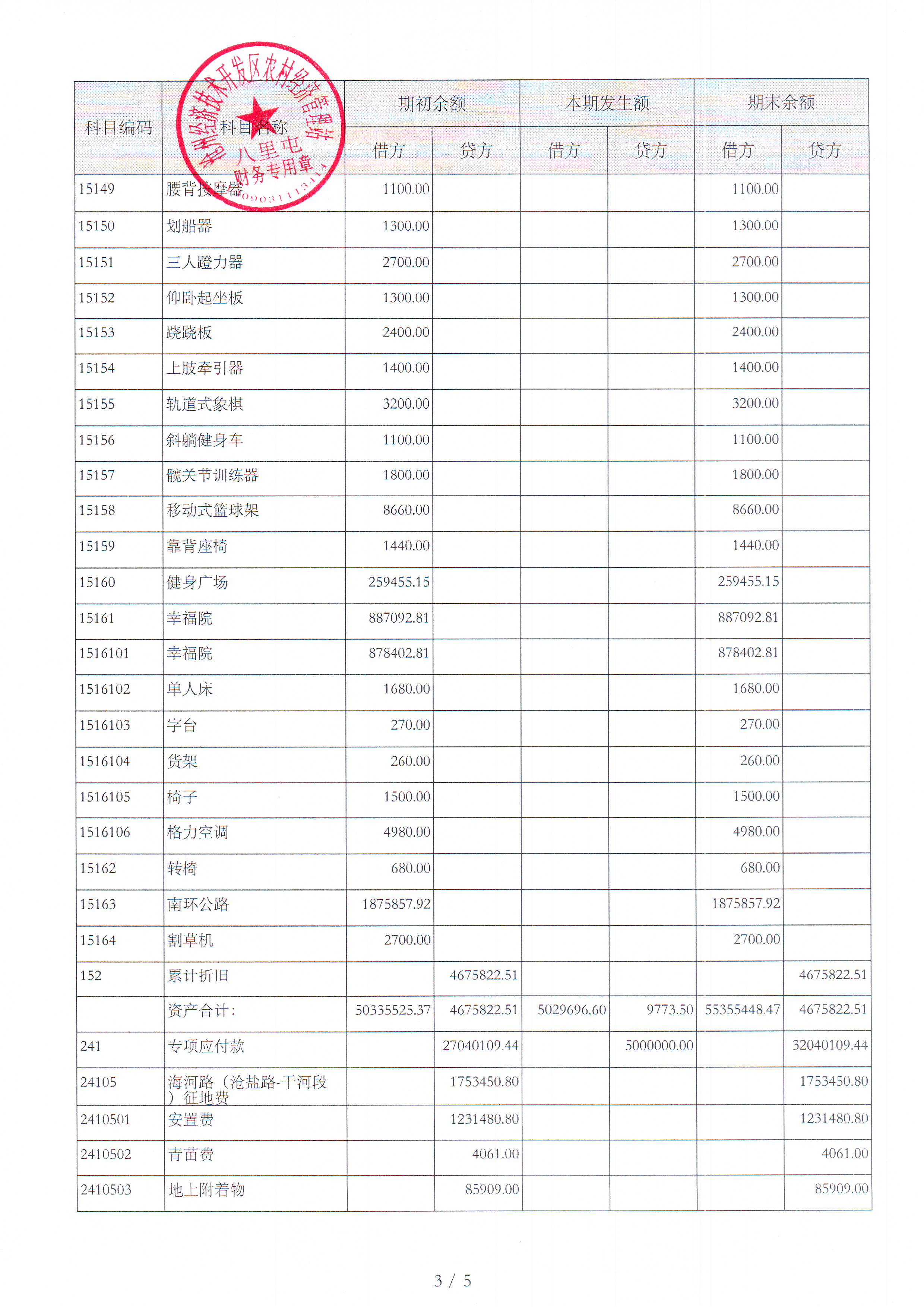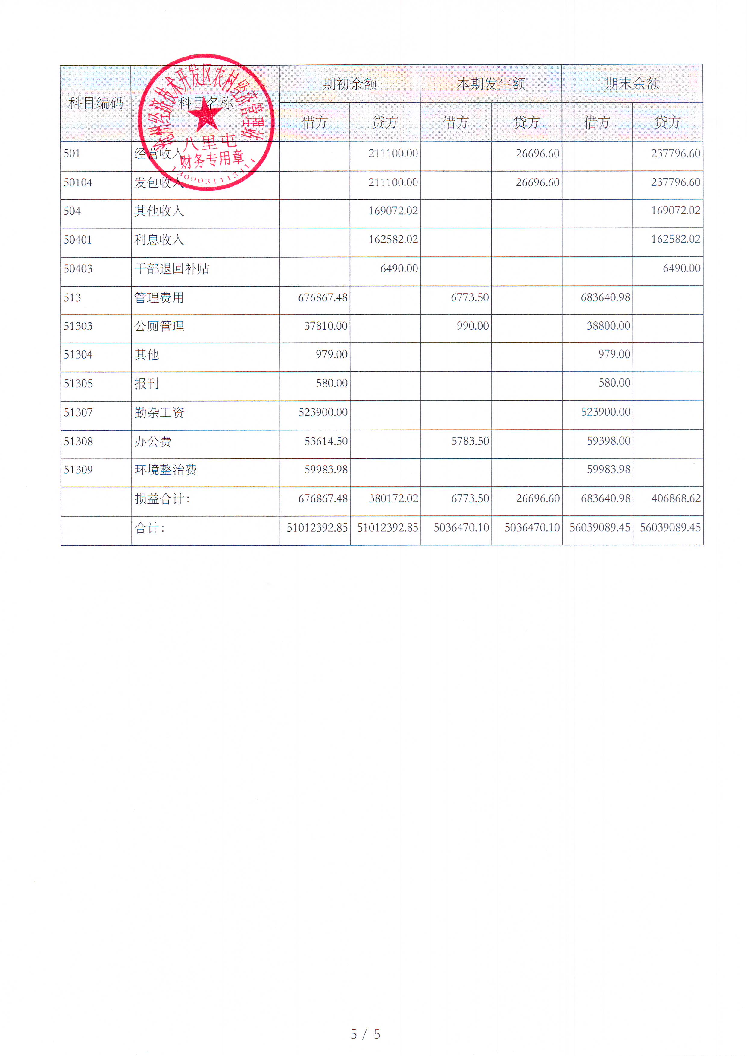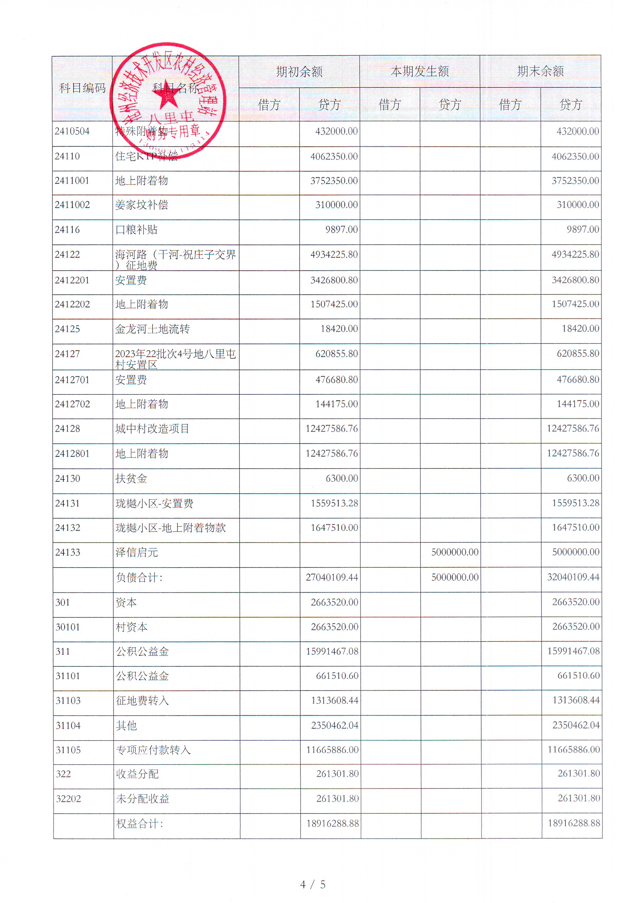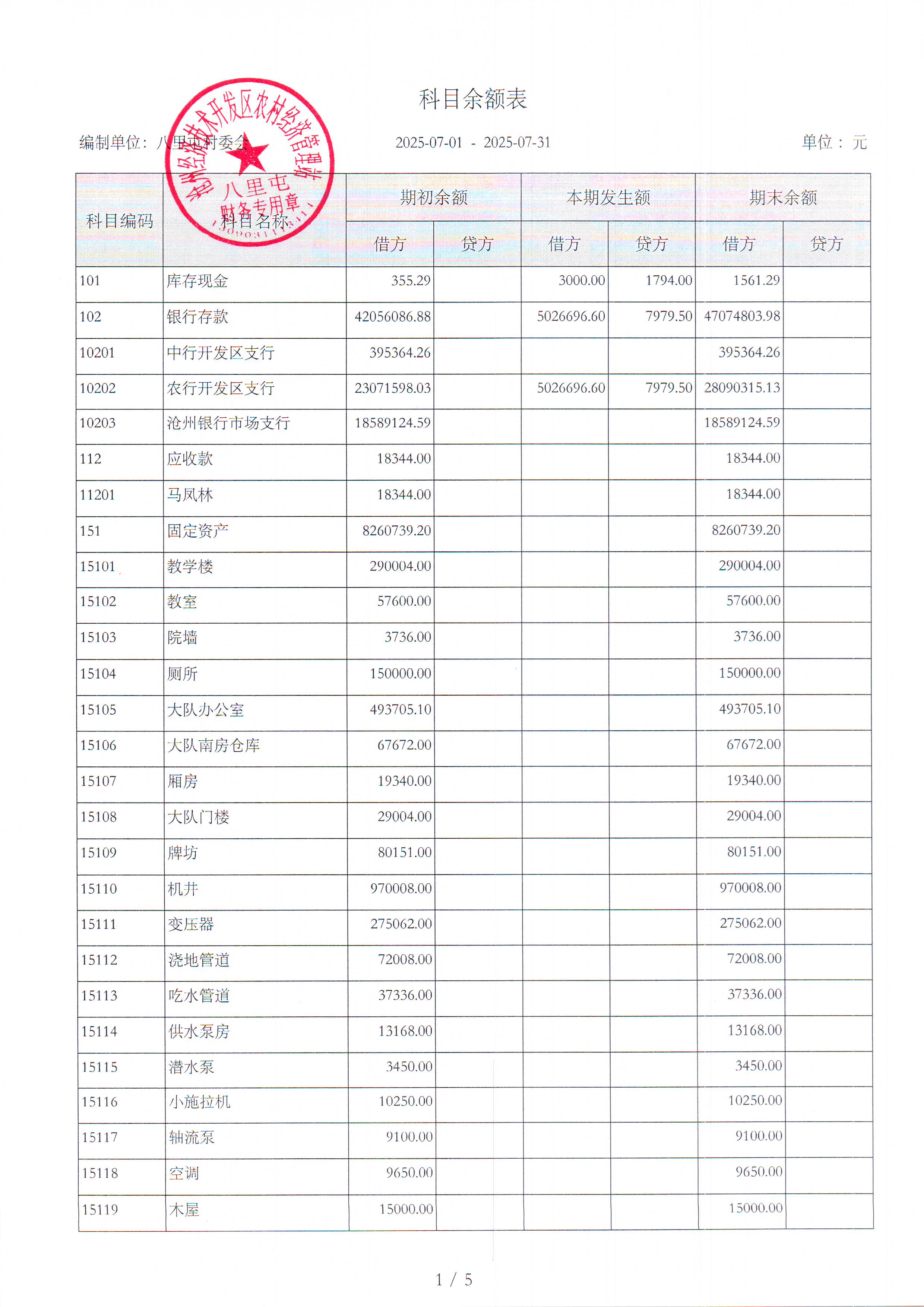八里屯村2025年7月财务公开