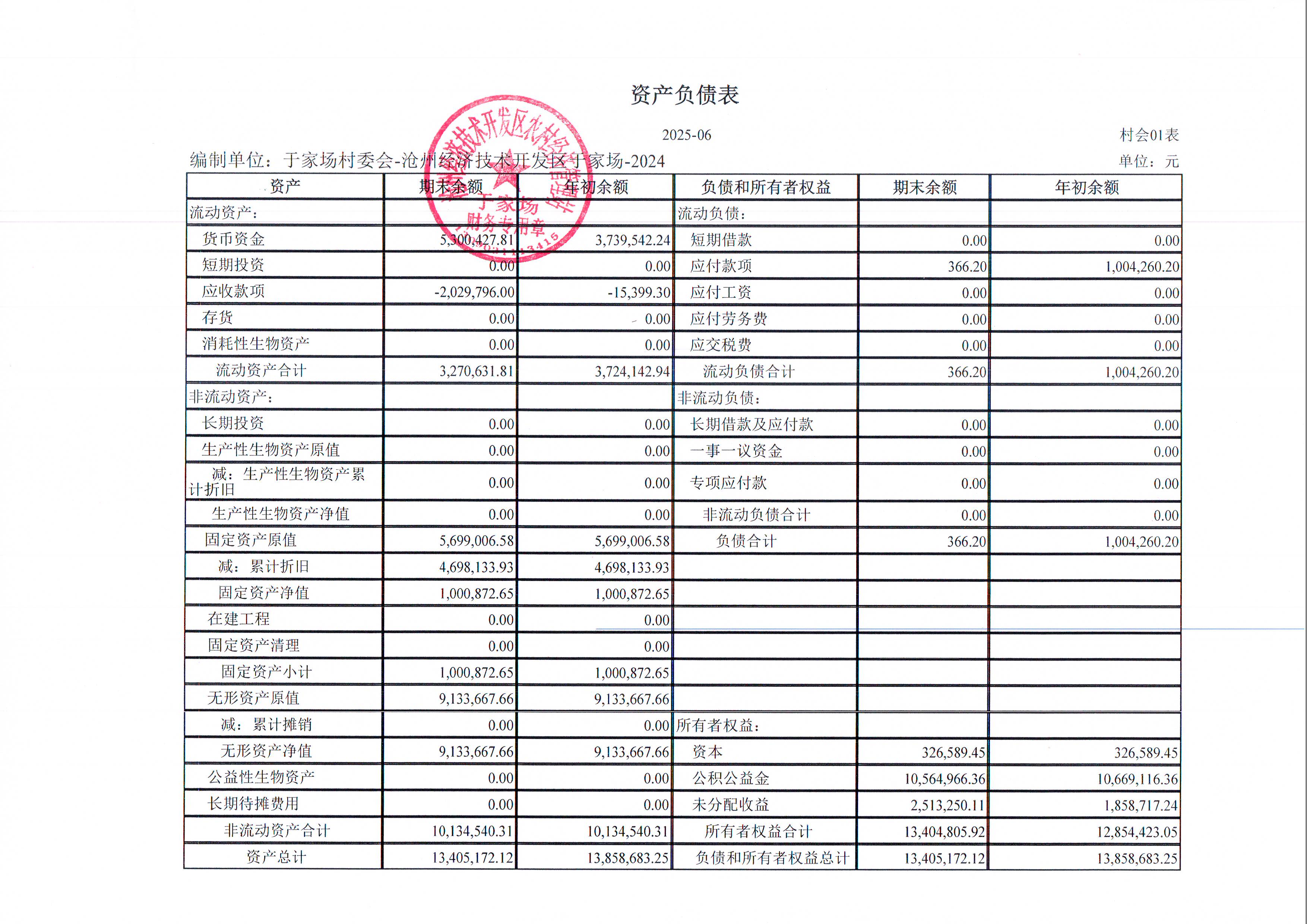 于家场村2025年6月财务公开