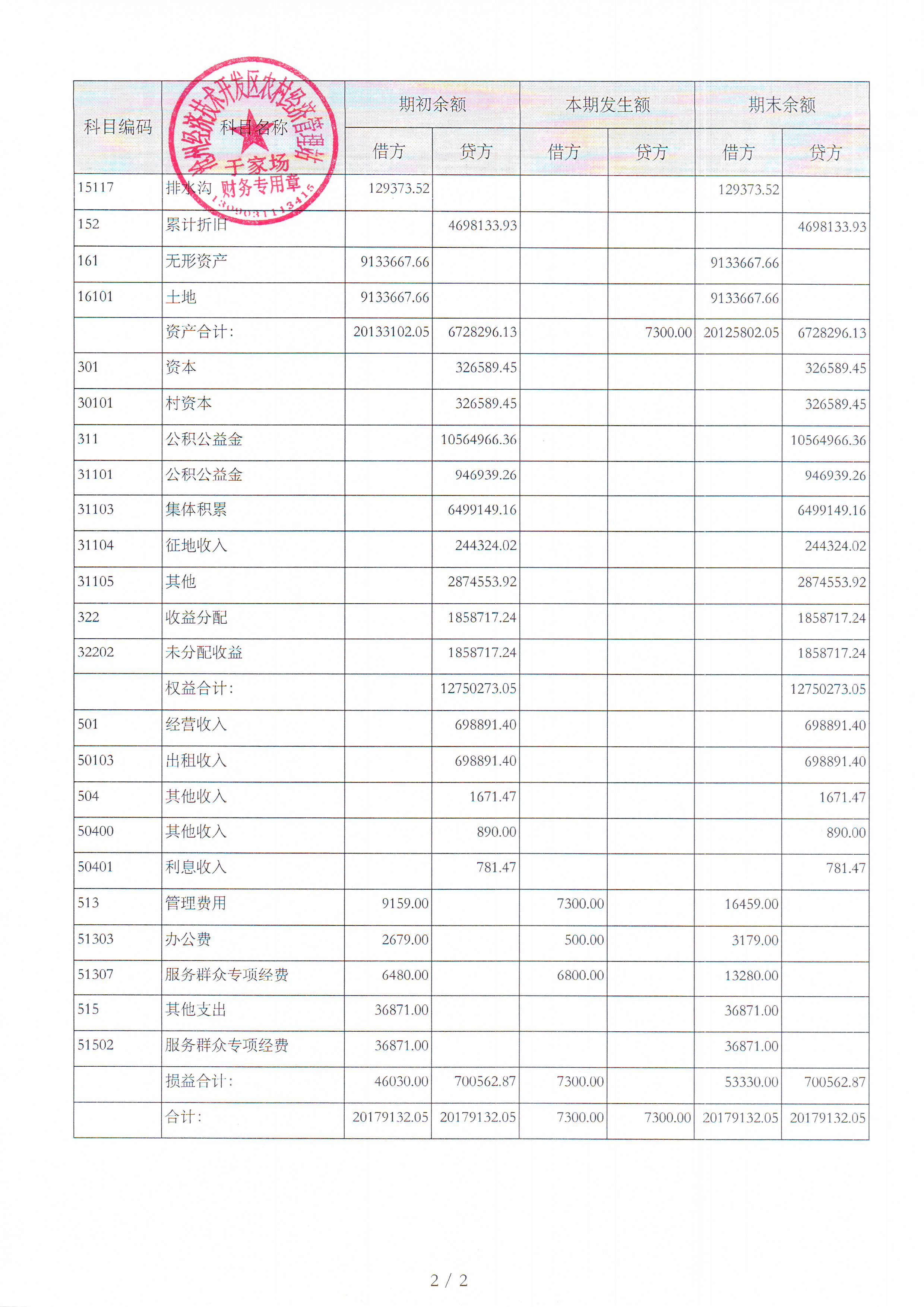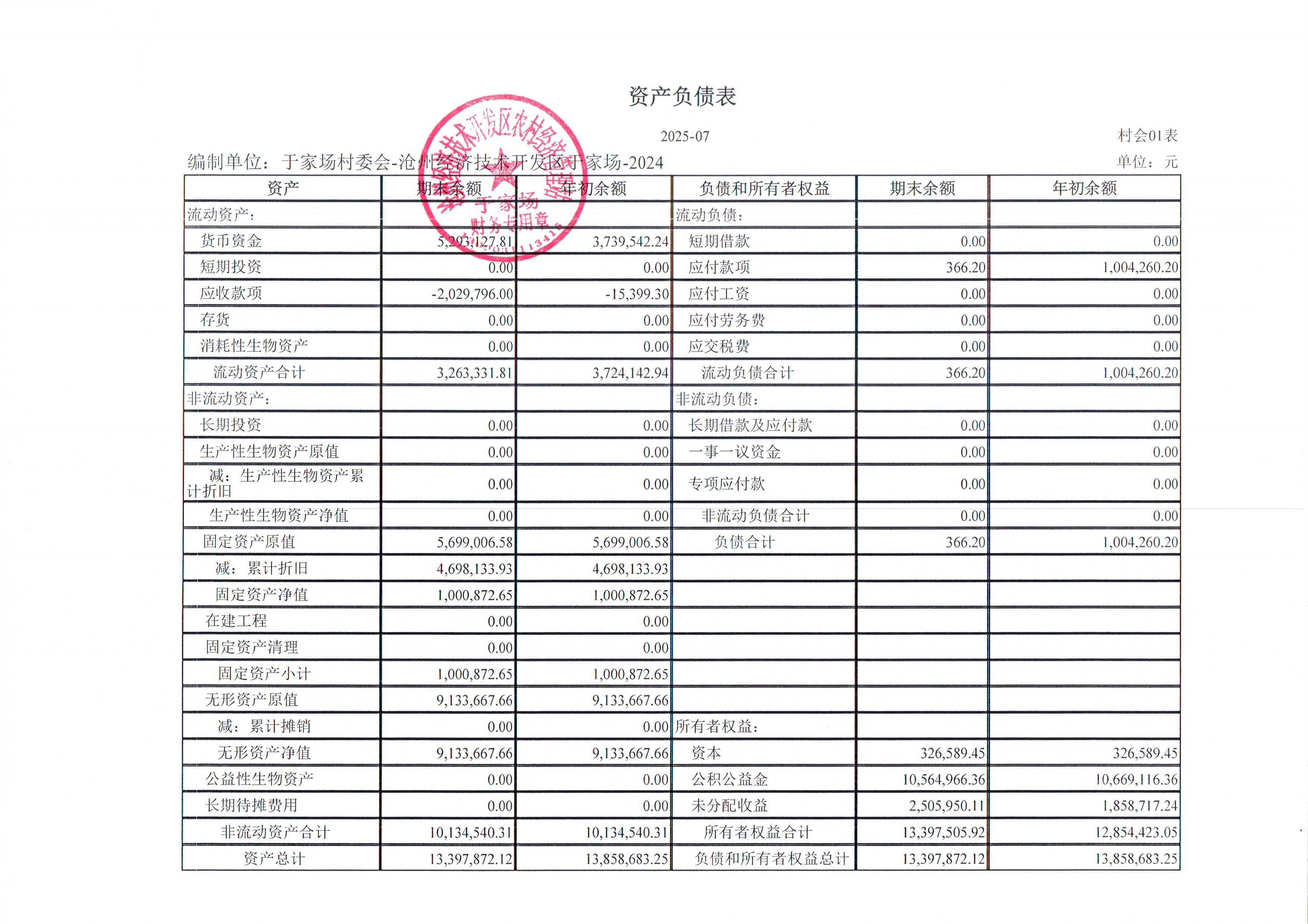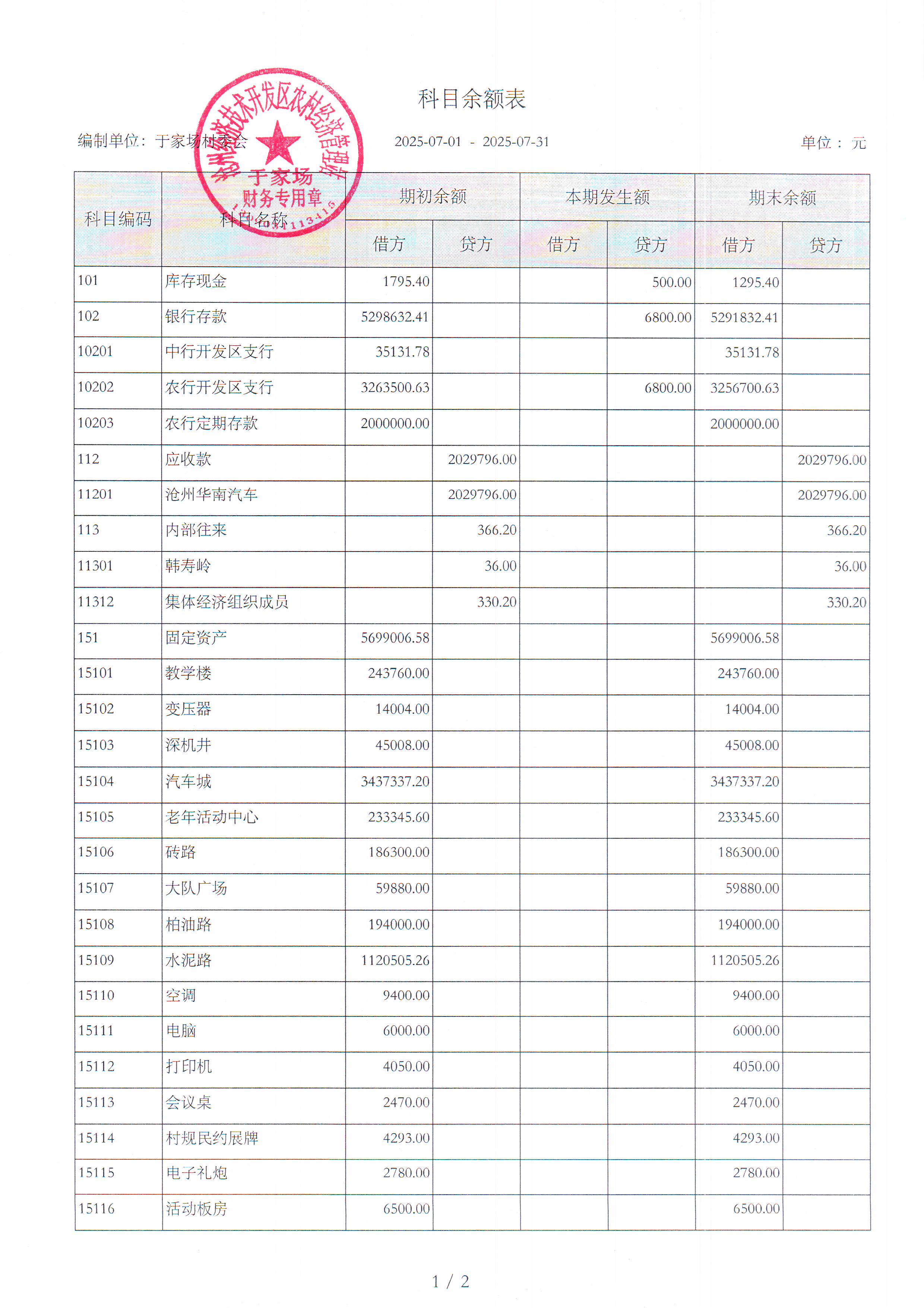于家场村2025年7月财务公开
