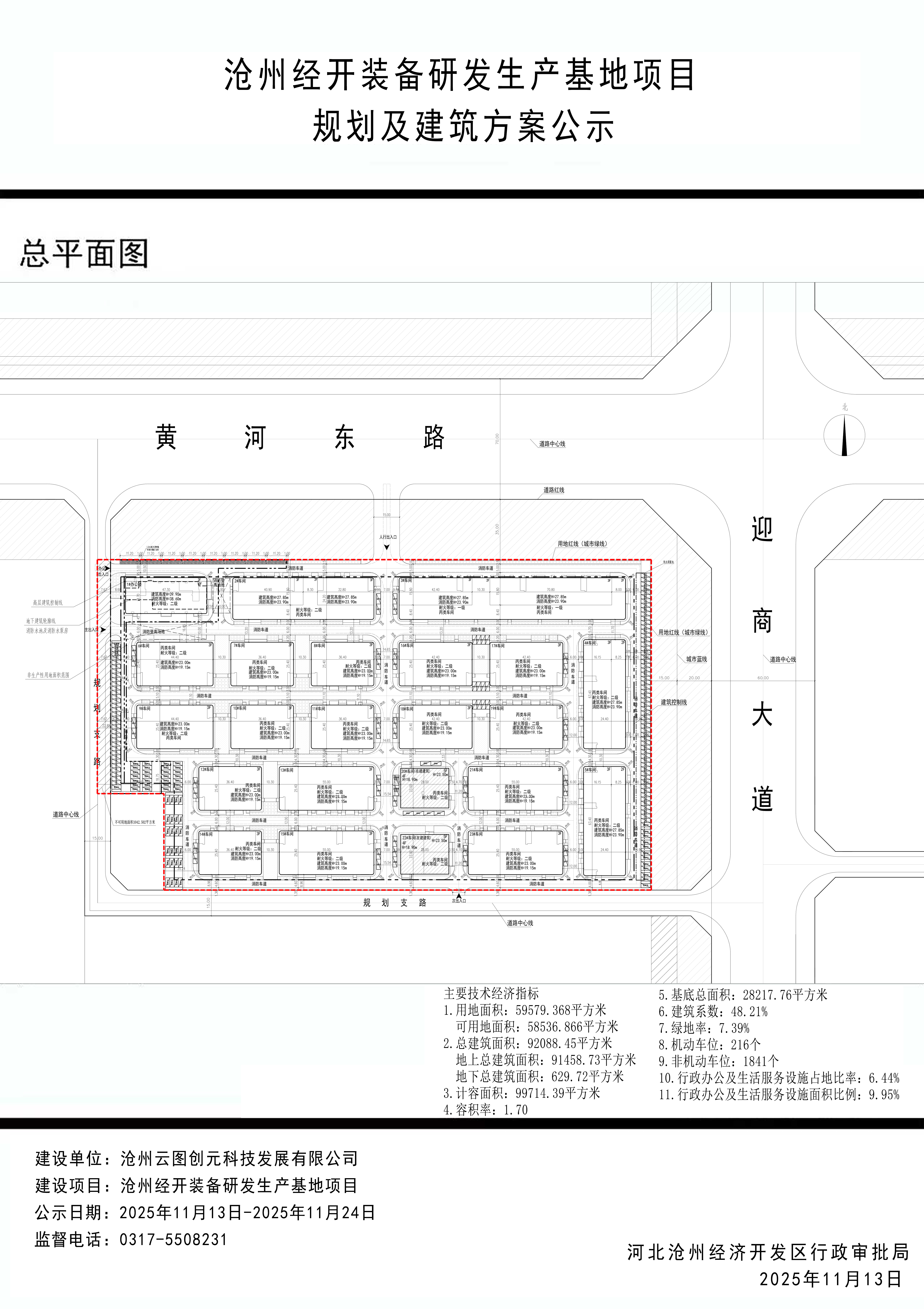 现拟对《沧州经开装备研发生产基地项目规划及建筑方案》进行批前公示。