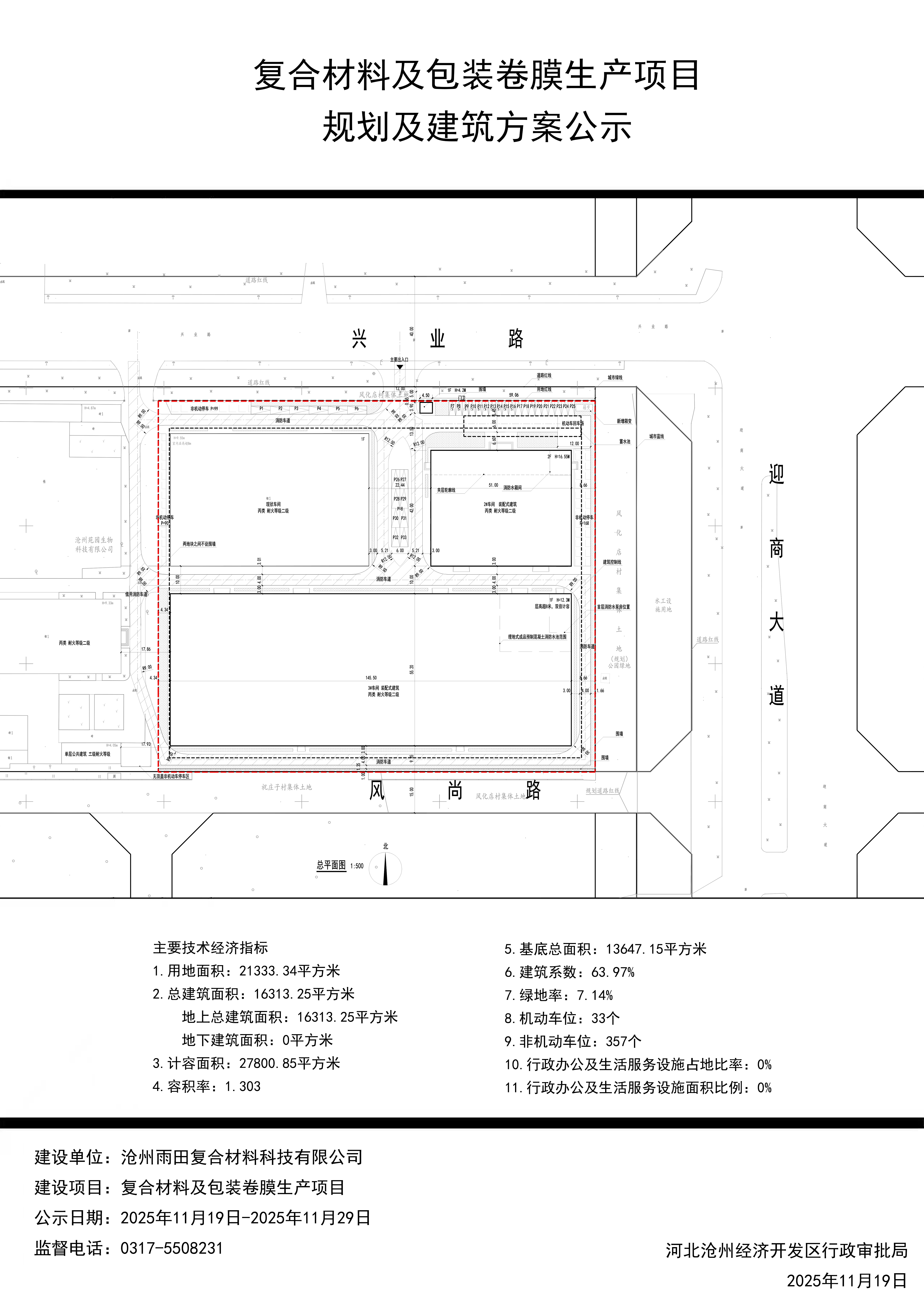 现拟对《复合材料及包装卷膜生产项目规划及建筑方案》进行批前公示。